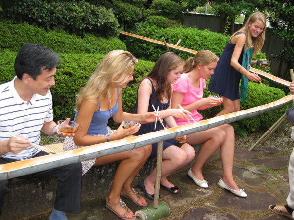 Although I always had been telling my colleague that I wanted to eat Nagashi-somen(flowing noodles), it is very difficult to find a restaurant which serves Nagashi-somen. Even you find one it will cost a lot, moreover Nagashi-somen is a n event for summer.